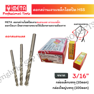 ดอกสว่าน HSS สีเงิน META 3/16″ (10)