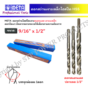 ดอกสว่าน HSS หัวลดสีเงิน META 9/16″
